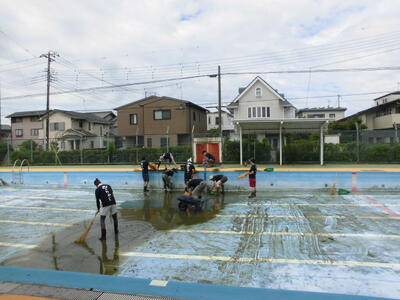 6月1日土曜日、PTA育成部(おやじの会)と先生方によるプール清掃が行われました。