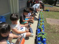 毎日お世話をしているあさがおを、タブレットのカメラで撮っています。記録として残しておくことができるので、成長の様子を確かめることができます。あさがお、大きくなったかな?