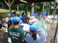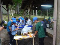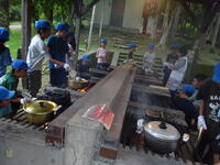 退職された先生方が、応援に来てくださり、調理の仕方、火の起こし方を教わりました。