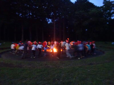 薪に火がついて燃え出すと、みんな歓声をあげていました。