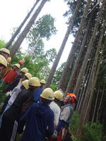 三島フォレストクラブのみなさんに「間伐体験・森林観察」をする、子ども森林塾をお願いしました。