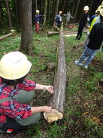 最後に、伐採した木の輪切りを全員がお土産としていただきました。