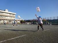 「先生!とても高く飛んだよ。」「手を挙げながら走ると高くなるよ。」と楽しそうな声がたくさん聞こえてきました。明日も天気が良ければ、凧揚げをする予定です。