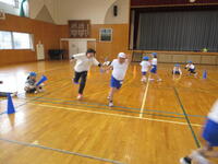 2年生は「手つなぎおに」で盛り上がっていました。ゲームをとおして、俊敏性・協調性等を養うことができます。