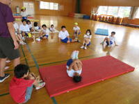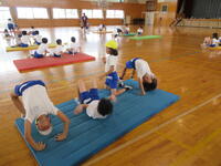 器械運動の基礎・基本となる動きを学んでいました。自分の体を巧みに操る能力を高められたら良いですね。子供たちは楽しみながら活動していました。
