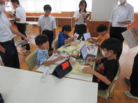 5時間目にプログラミングに挑戦しました。タブレットを使って指示を出し、先生からのミッションをクリアしようと何度も繰り返し挑戦することができました。うまくできなかったことを、諦めずに友達と話しながらがんばることができました。