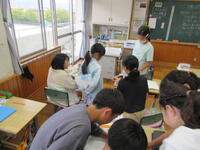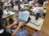 4年生は、水について学習しています。水の性質の一つの「水の流れ方」について学習しています。水たまりのできる場所や、その理由について考えていました。9月5日(金)の台風が来たときの運動場の様子を、担任が撮影していました。その画像を、タブレット端末の学習支援アプリに添付し、自分の予想と比べながら共有していました。