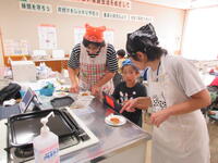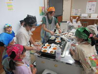 2年生は、他施設に育てたピーマンやミニトマトの野菜を収穫して、餃子の皮を使った「ミニピザ」づくりをしました。