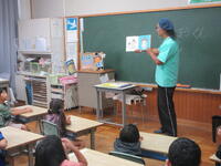 今日は、お昼休みに図書ボランティアの方々による「お話会(読み聞かせ)」が開催されました。会場のランチルームには、低学年を中心にたくさん集まりました。お話の世界に入り込んだ子供たちは、目を輝かせていました。