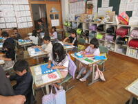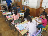 1年生の国語の授業の様子です。小学校に入学して6ヶ月が過ぎようといています。本を読む姿勢、字を書く姿勢等、大変立派です。できなかったことができるようになると嬉しいですね。