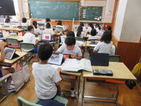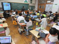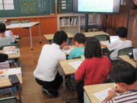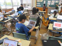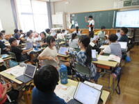 自分で決めた国について調べ、それを英語で紹介する活動の準備を一生懸命行っていました。子供が自己決定して個別最適な取り組みをしていました。また、ALTと担当教諭が用意(独自作成)した、英語で紹介する際の模範動画や、紹介の仕方が学べる動画などで学んでいる子供もいました。何を行うかが明確でGOALがはっきりしていると、子供たちは夢中になって取り組みます。