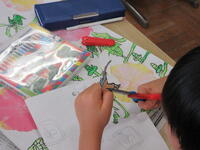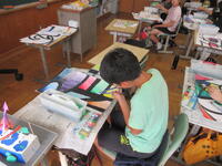 6年生図画工作科の学習の様子です。画用紙に自分の名前をつなげて書き、色を付けています。ひとりひとり、創意工夫する姿が見られました。どんな作品になるか楽しみです。