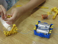電流と電磁石の学習の様子です。電磁石の力を強くするために、ペアになって強さを確認しています。磁石が付かないときにすぐに諦めず、どうしてつかないのか、原因をさがす姿がすばらしかったです。