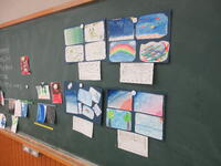 図画工作科の時間に「見つけよう いい感じ」の絵の具の学習をしました。好きな色を5色選び、重ね合わせて色の重なりを学習しました。色が重なると、特別な色になってすてきでした。
