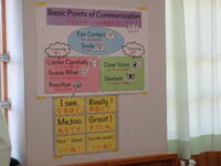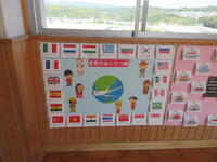 英語担当教諭は、子供たちに、外国語の楽しさや異文化を伝えようと、廊下や教室の壁面に工夫を凝らした掲示をしています。ユニバーサルデザインの視点を活かして、どの子にも「伝わる・わかる・楽しい」掲示となっています。参観日などで学校にお越しの際は、ぜひご覧になってください。