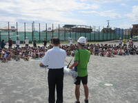 朝の時間を使って、1学期「節目の式」が行われました。校長は、「節目」の意味と「節目」の大切さについて、竹の生長の秘密を例にして話しました。10月10日で1学期の104日間(1日休校があったため103日間)が終了となります。学校教育目標『心豊かな たくましい子』重点目標『自ら動く 共に伸びる』を目指して、いろいろな場面でがんばる姿が見られました。1学期の終わりの節、2学期のはじめの節を大切にして、よかったところはさらに伸ばし、もう少しがんばりたいところについては、克服できるようにしていきたいと思います。子供たちの校歌の歌声がすばらしかったです。