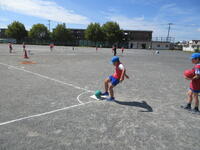 4年生は、秋空のもと、元気いっぱい「キックベースボール」を楽しんでいました。