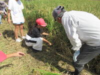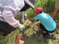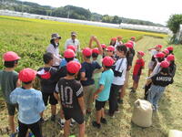5年生は、6月に、学校近くの田植えの様子を観察したり農家の方からお話を聞いたりしました。今日は、同じ水田の稲刈りの様子を観察するために出かけました。子供たちは、大きく成長し、黄金色に生長した稲穂に感動していました。実際に、鎌を使って稲を刈る体験もさせていただきました。子供たちは、貴重な体験にうれしそうでした。地域の皆様、本当にありがとうございました。