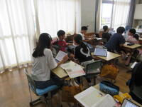 4年生は、反射炉の秘密を探す活動をしていました。一人で調べる子、ペアやグループを作って調べる子、先生と一緒に調べる子。自分の学びを選択して探究活動をしていました。みんな夢中になって調べていました。
