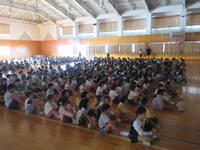 9月1日朝の時間に全校朝会、命を考える時間を行いました。地震はいつ起きるか分かりません。自分の命は自分で守らなければなりません。校長先生から、命を守るために、日頃から3つのことについて気を付けて生活してほしいという話がありました。