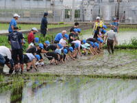 錦田小PTCA委員長の髙橋様の田んぼで田植え体験をさせていただきました。ほとんどの子供たちが初めての体験で、恐る恐る田んぼに入っていきました。一列に並んで、苗を植える目印の縄に沿って植えていきました。保護者の皆様、PTCA学習支援の皆様がボランティアで多数参加してくださり、子供たちのサポートをしていただきました。高橋様、地域の皆様、本当にありがとうございました。