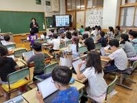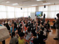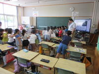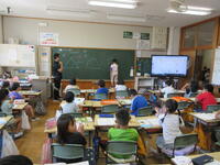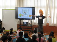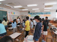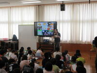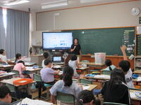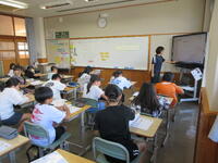 中の写真は、2年生の外国語(英語)学習の様子です。1年生と2年生は、年間3回の外国語学習があります。その第1回目でした。ゲーム「ジャンケン列車」を通して、外国語(英語)に親しんでいました。