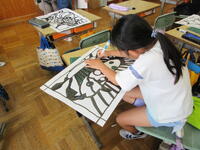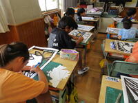ステンシルの技法を使った作品作りです。「自然」をテーマに、一人一人が決めた下絵に取り組みました。その後、切り始めた子供もいました。自己課題(自分が決めた作品)達成に向けて、黙々と取り組んでいました。完成が楽しみです。