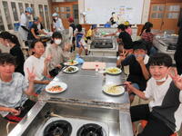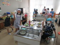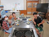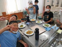 一人一人が決めた、野菜炒めの具材を用意して調理しました。多様な野菜炒めが並んだ様子がとてもすてきでした。「おいしい」「塩こしょうを入れすぎた~」など、食べながら振り返りをしました。子供たちが、生き生きと楽しく活動していた姿が印象的でした。