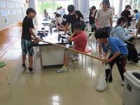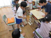 各グループに分かれて、「てこ」の原理について実験を繰り返していました。実験の結果を記録したり、実験の結果からわかることをまとめたりと、友達と協力して楽しく行っている姿が印象的でした。