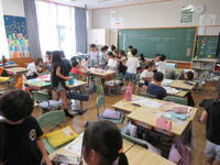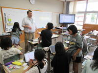 5年生は、身近な人を紹介する英会話を行っていました。皆の前で堂々と英会話をする姿に頼もしさを感じました。グローバル化が進む時代を生き抜く子供たちには、主体的に相手とコミュニケーションを図っていく気持ちを高めていってほしいですね。授業後半は、聞き取ったアルファベットを書く練習をしていました。