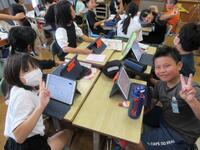 4年生は、「月や星の動き」を学習した後に生まれた、疑問や課題等を解決するために、一人一人が夢中になって探究学習に取り組んでいました。タブレット型端末を効果的に活用していました。特に「他者参照」しながら、各自学びを深めていたのが印象的です。