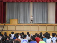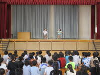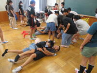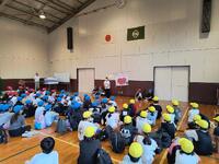 地震を想定した避難訓練を行いました。一次避難で素早く身を守り、二次避難で運動場へ移動しました。校長先生からは、「訓練を真面目に行う重要さ」「様々な場面を想定し、避難行動を考えておく大切さ」について、話がありました。
