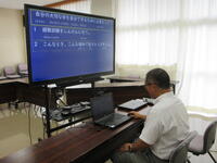 1年生は、タブレット型端末の「チームス」を活用して、リモート配信をする方法を学んでいました。