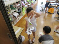 2年「だるまさんはころばない」だるまが転んでしまっても、急いで立て直す素晴らしいチームワーク!