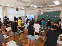 9月1日の「防災の日」に向けて、8月30日に防災朝会を実施しました。校長先生より、自分の大切な命を自分で守るために必要なこととして、①避難訓練を真剣に行う。②こんなとき、こんな場所で起きたらを考える。③毎日の学習や生活を大切にする。という話がありました。どの子もしっかりと話を聞いていました。