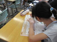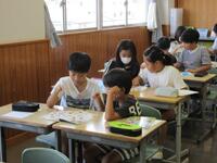 漢字の学習においては、「四」などの形を整えるのが難しい漢字に挑戦していました。先生の話をしっかり聞きながら、漢字ドリルへ書き込んでいました。