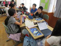 5年生の国語の様子です。「76億個のピース」という教材から「世界の人と仲よくするには?」「いろいろな文化の違いがある方が良い?」「日本との文化の違いは?」という問いについて、一人一人がタブレット型端末を効果的に使ってまとめていました。5年生の学習意欲に感心しました。
