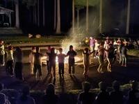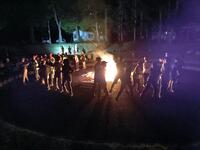 夕食が終わり、あたりがだんだんと暗くなり、キャンプファイヤーが始まりました。火の神を迎えて聖なる火をもらい、歌やダンスで楽しみました。昼間の疲れも感じさせず、子供たちは盛り上がっていました。