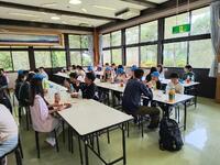 昼食は食堂でお弁当です。箱根の里最後の食事。子供たちはよくがんばりました。昼食後は、清掃活動です。来たときよりも美しくして帰りましょう。