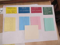 1年生は、校庭の虫マップを作りました。今日は、色分けされた「見えたこと」「ばしょ」「うごき」「さわってみて」の付せんに、虫について書き込んでいきました。自然に生まれるグループ内の対話をとおして、子供たちの学び(気づき)が深化していました。