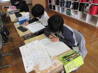 校庭で見つけた春の植物を写真に撮り、ワークシートにまとめていました。たくさんの種類も見つけた子は、それぞれの写真を貼り付けていました。「ここをトリミングして」と画像編集をして、わかりやすくまとめようとしている子もいました。