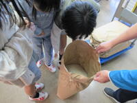 収穫したお米が精米されました。子供たちは、目を丸くしてのぞき込んでいました。同時に進めていた「バケツ」で育てた稲の収穫を終え、出来具合の確認作業を行っていました。