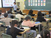 3年生外国語活動の学習の様子です。写真は、聞き取り問題に挑戦しています。色や形について学んだ子供たちは、音声を聞いて問題に答えることができました。たくさんの単語を言えるようにがんばりましょう。
