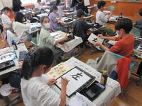 4年生の書写の学習の様子です。『左右』の字のバランスを意識して集中して取り組むことができました。