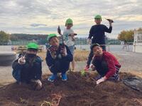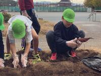 錦田小の正門に植えられていた「山ももの木」を伐採、伐根をしました。花を植えるためには、まだ根や石が残る中、6年生が朝からボランティアとして活動してくれました。ありがとうございます。
