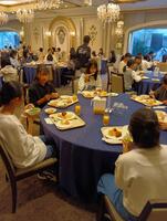 朝からもりもり食べていました。朝食もブッフェスタイルなので、食べたいものを自由に取っています。ホテルのおいしい朝食を食べて元気が出ますね。