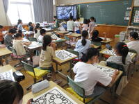 ステンシルの技法を使った作品作りです。「自然」をテーマに、一人一人が決めた下絵に取り組みました。その後、切り始めた子供もいました。自己課題(自分が決めた作品)達成に向けて、黙々と取り組んでいました。完成が楽しみです。