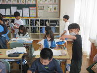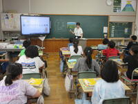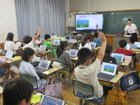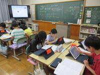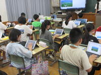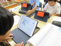 社会科の学習で米作りについて学習しています。米作りの盛んな地域には、どんな秘密が隠されているのか、資料やタブレットから分かる情報を整理して考えを伝えることができました。