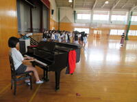 6年生は、合同音楽で合唱(2部合唱)を行いました。「僕らの日々(池田綾子 作詞・作曲)」の素敵な歌を、学級ごと順番に歌いました。最後は、体育館に移動して、児童の伴奏で全員合唱をしました。体育館にきれいなハーモニーが響き渡りました。今から卒業式での歌声が楽しみです。