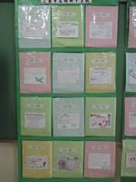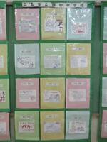 1年生の昇降口に美術作品と書写作品が掲示してあります。